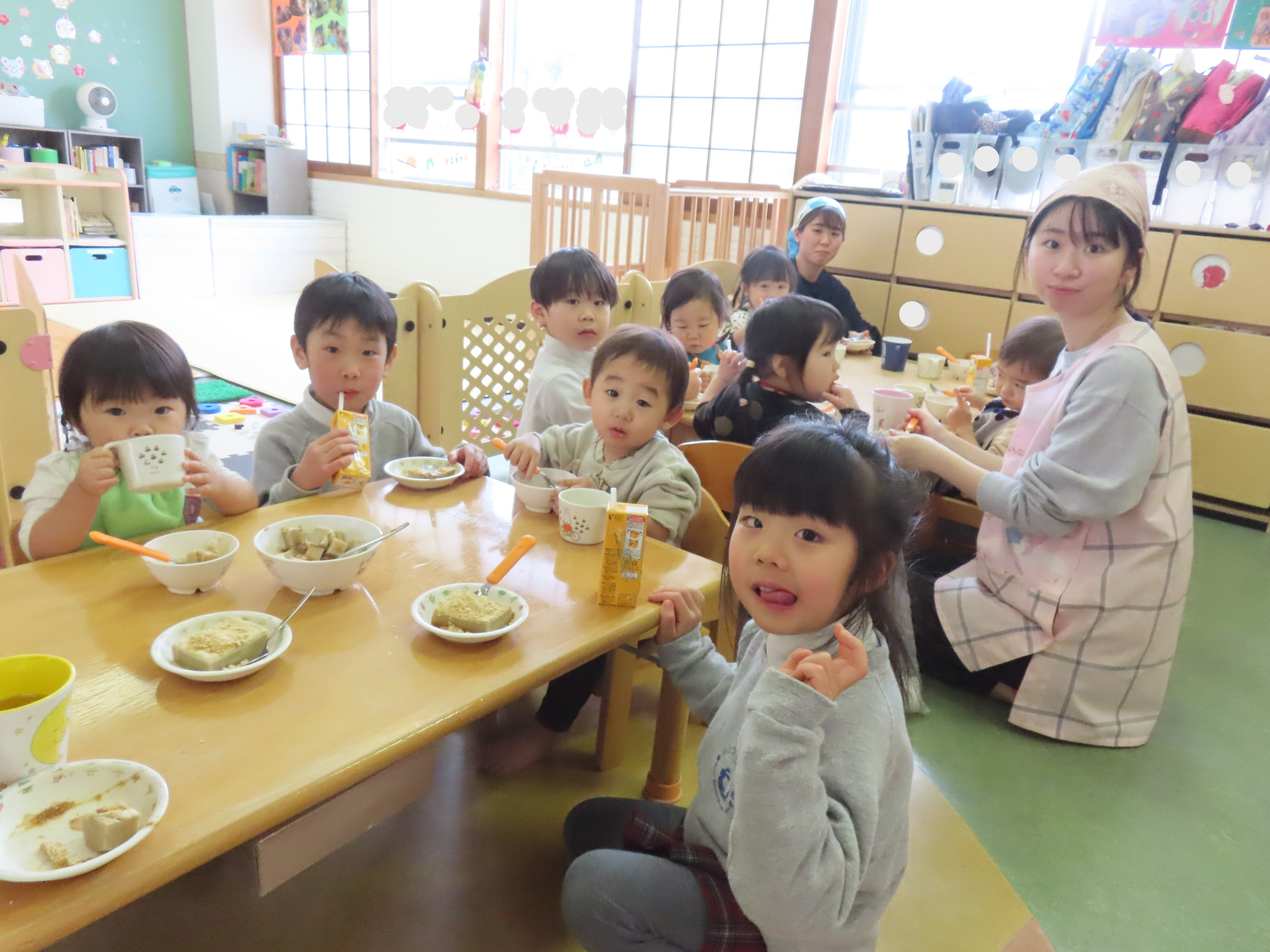 みんなで食べるおやつはいつもよりおいしかったよ😋