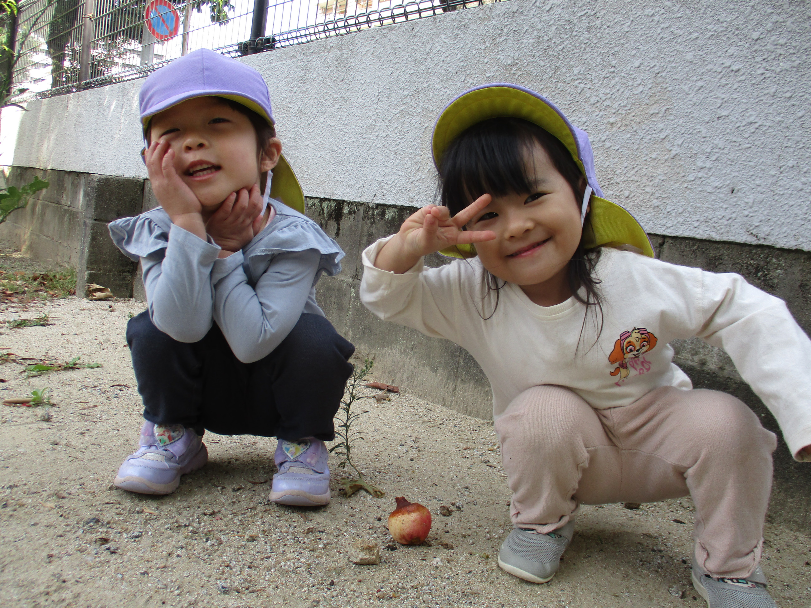 お外で遊ぶの大好き!! どんぐりや木の実を見つけると嬉しそうに教えてくれますよ✨