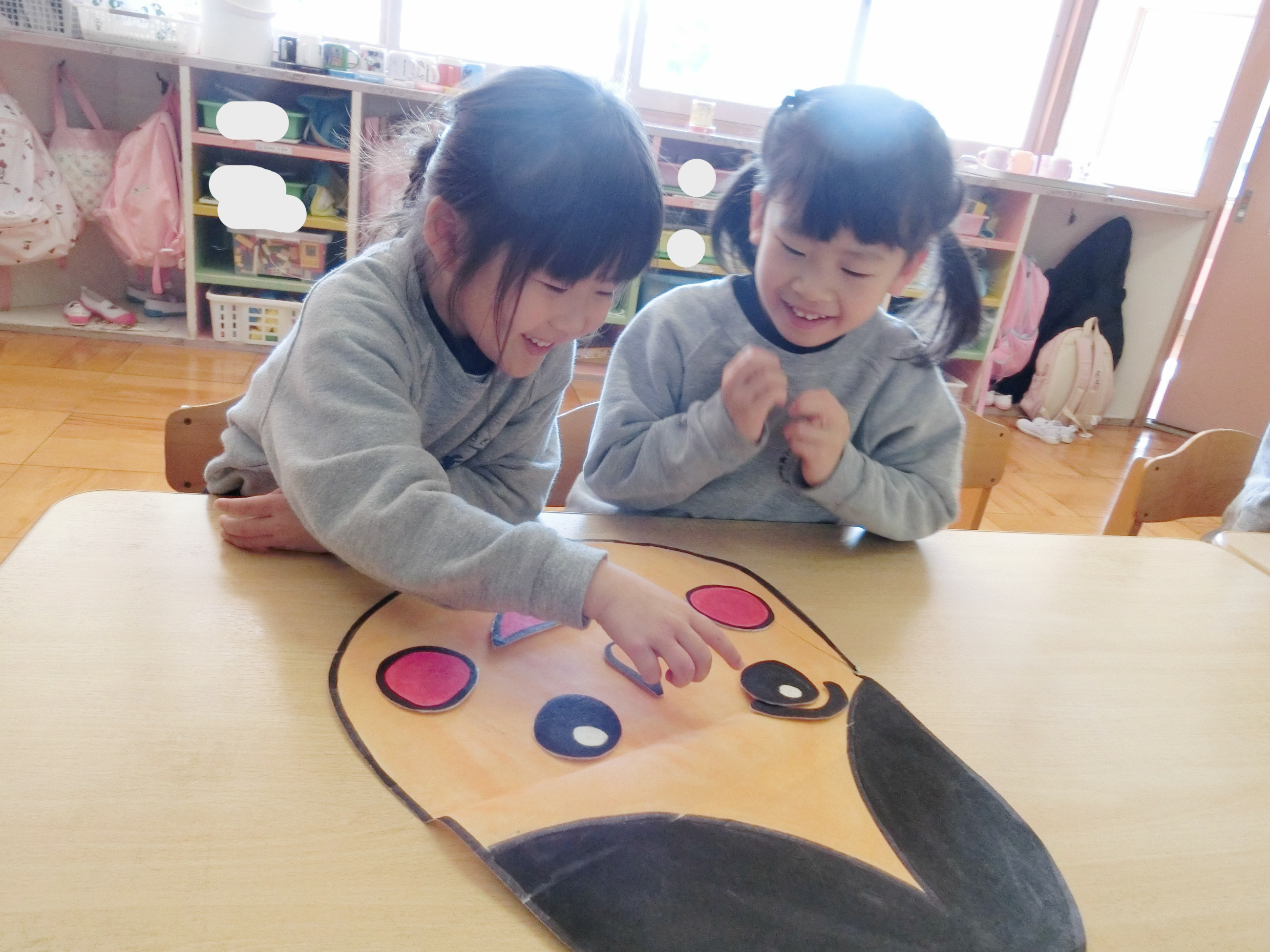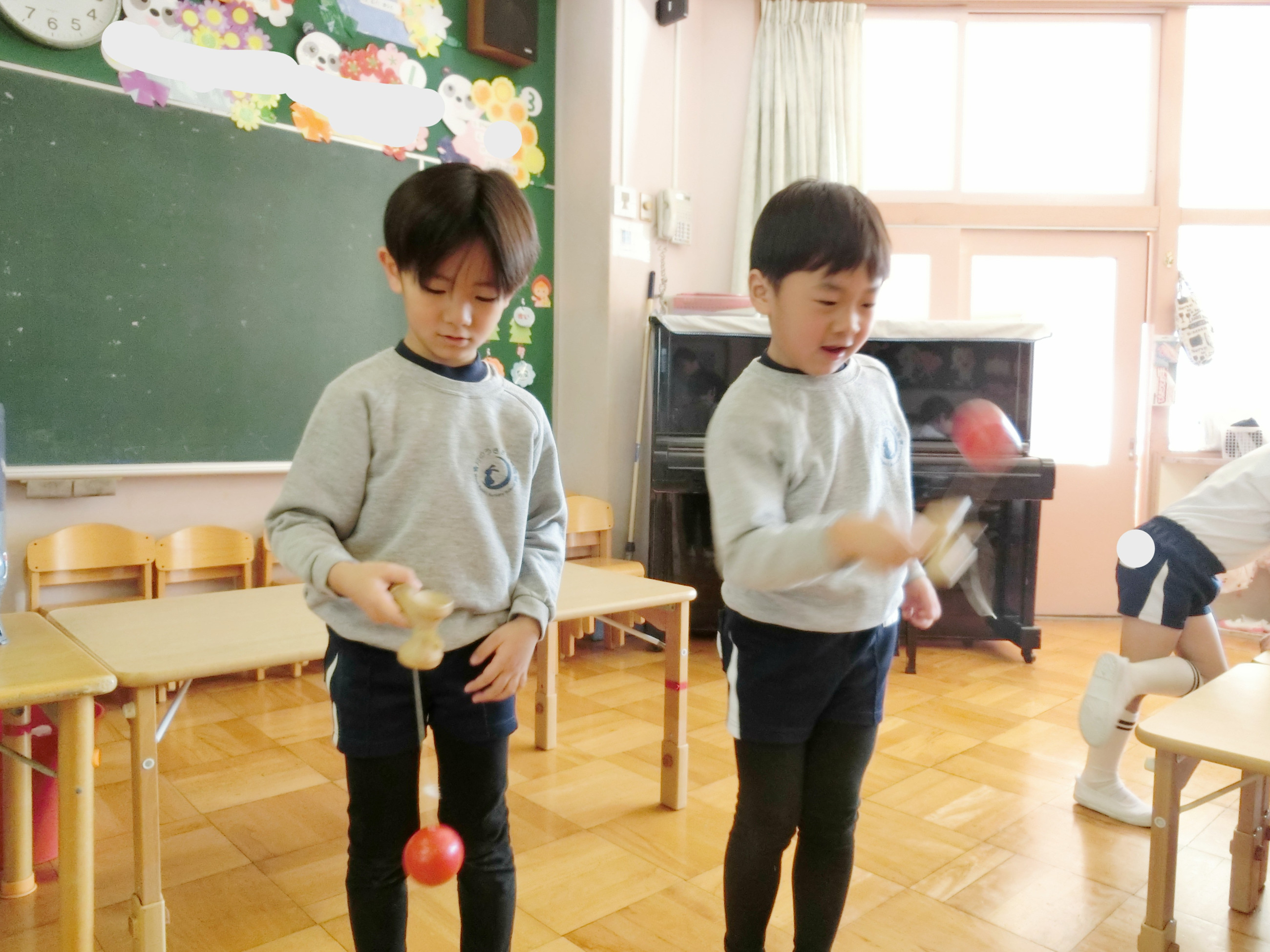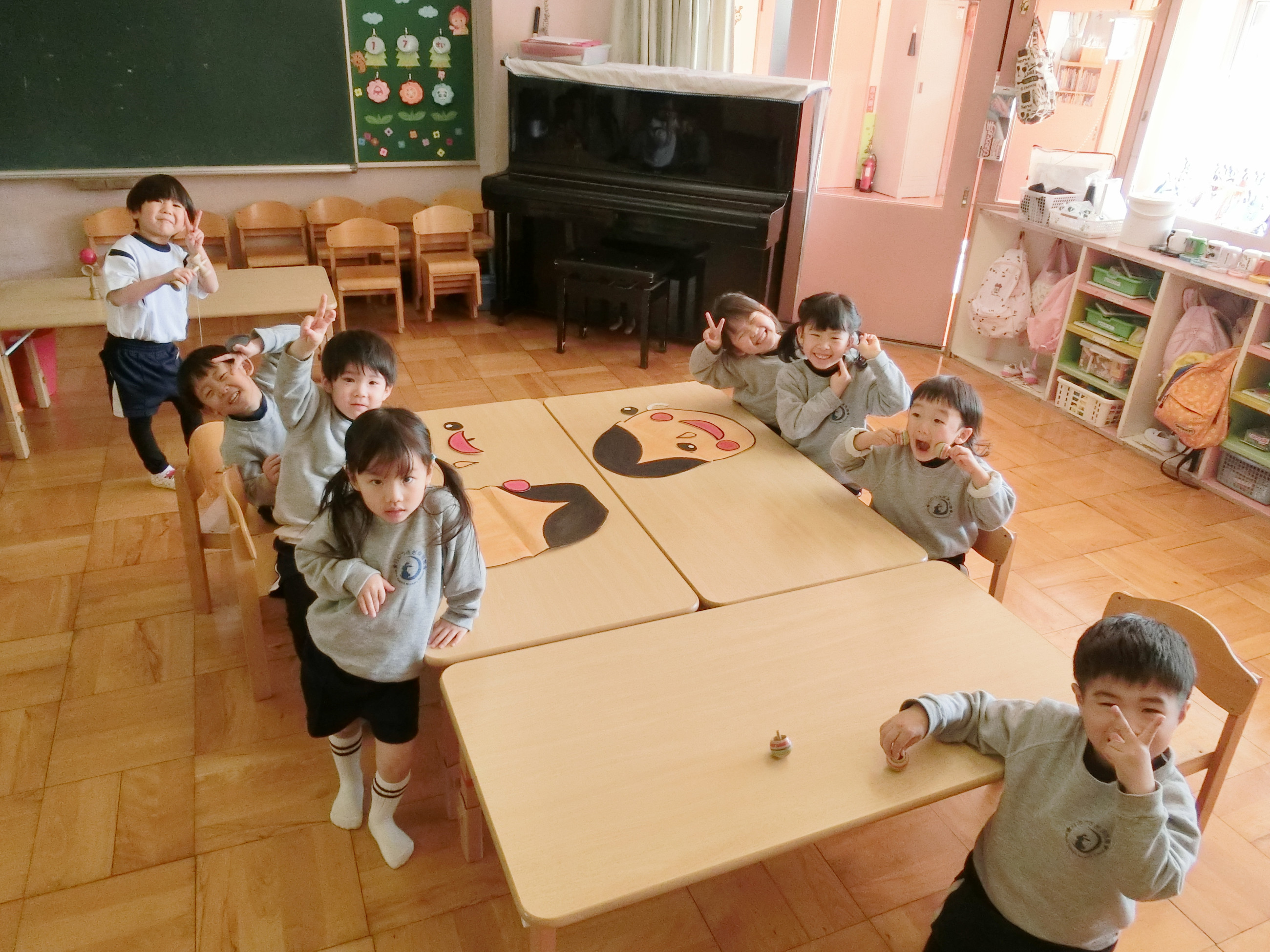 1月上旬に「お正月遊び」を行い、かるた・こま・けん玉・福笑い等々🎵大盛り上がりの中遊んでいきました😁
