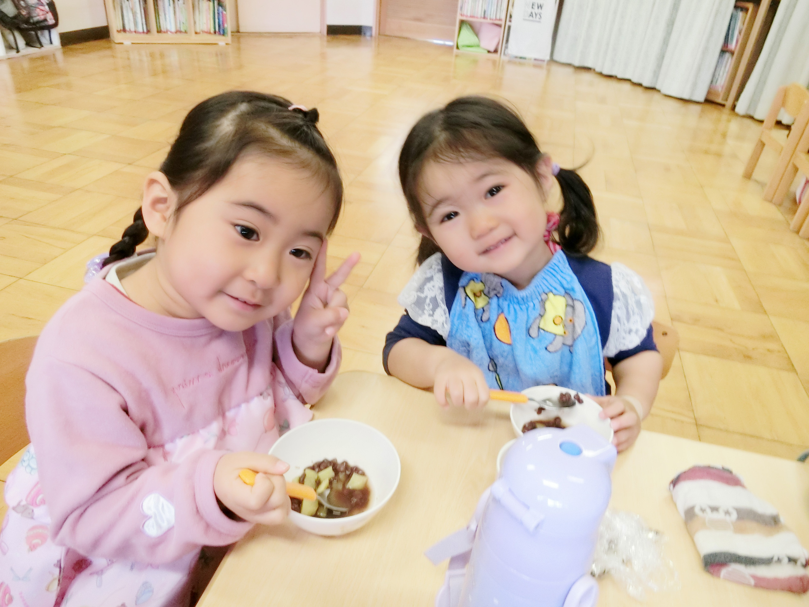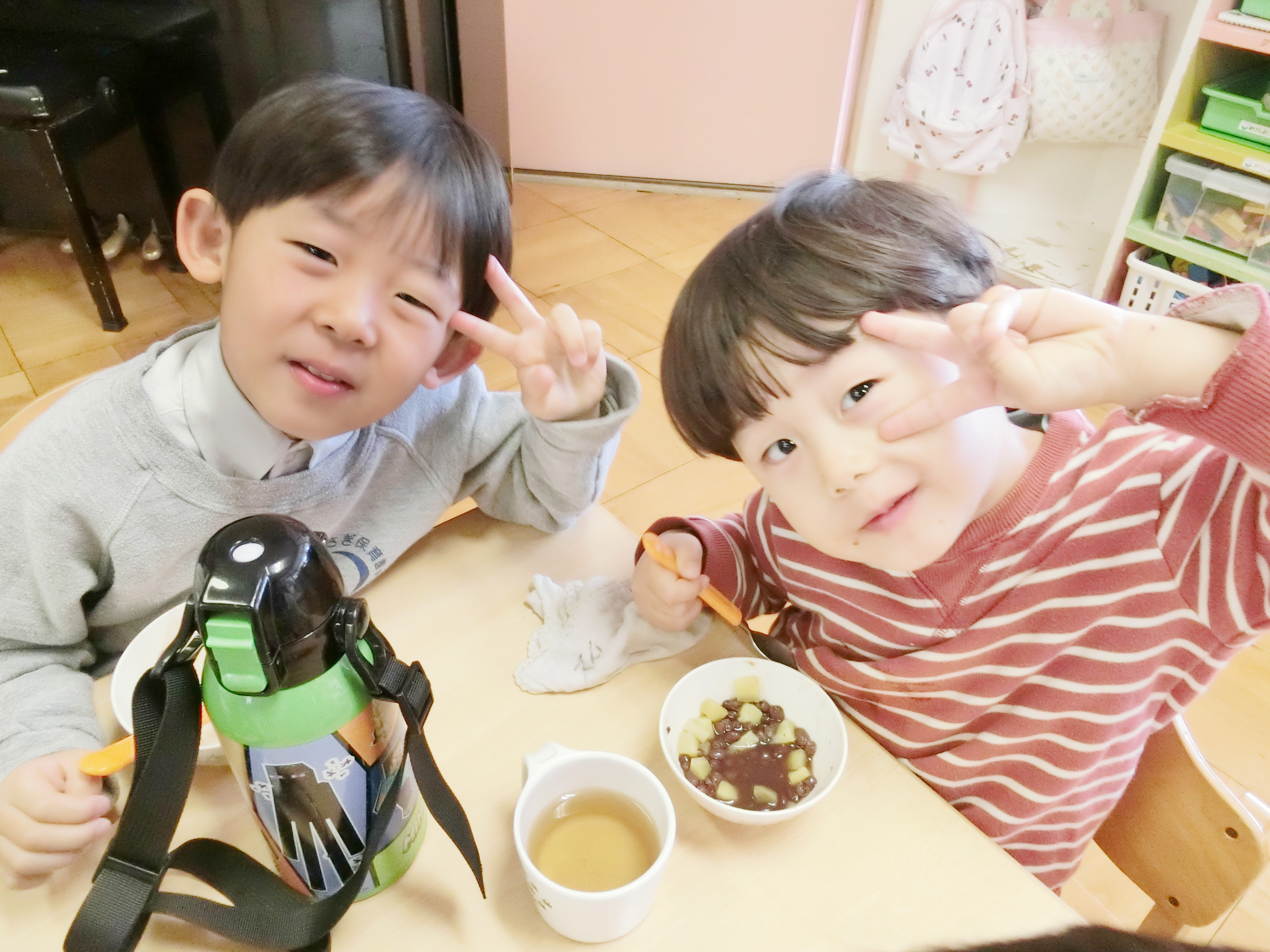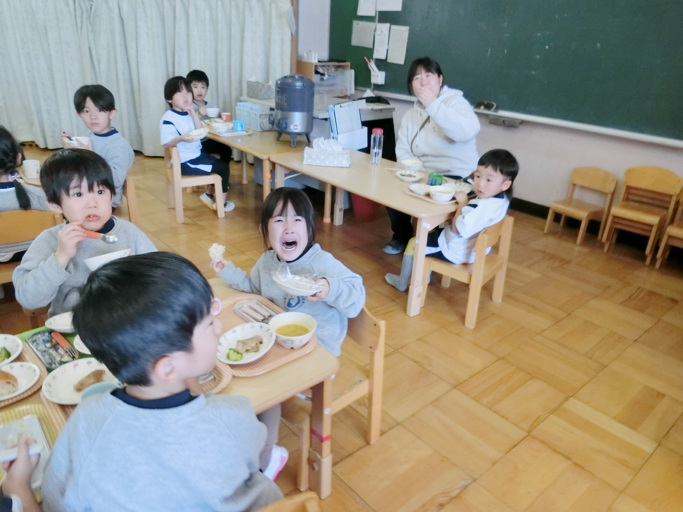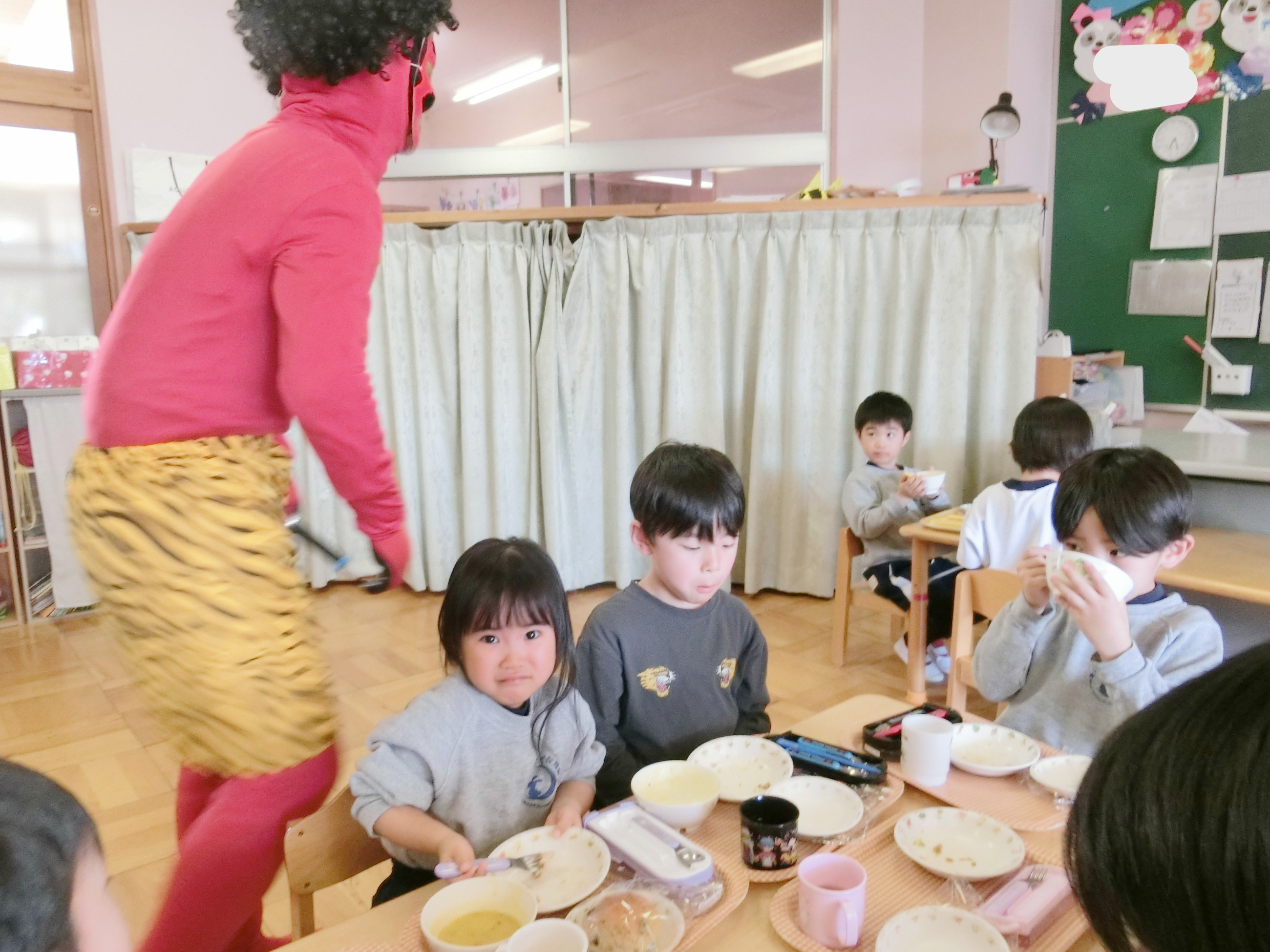 仲直りした後は、給食の様子を鬼が見に来てくれました~(*'▽')