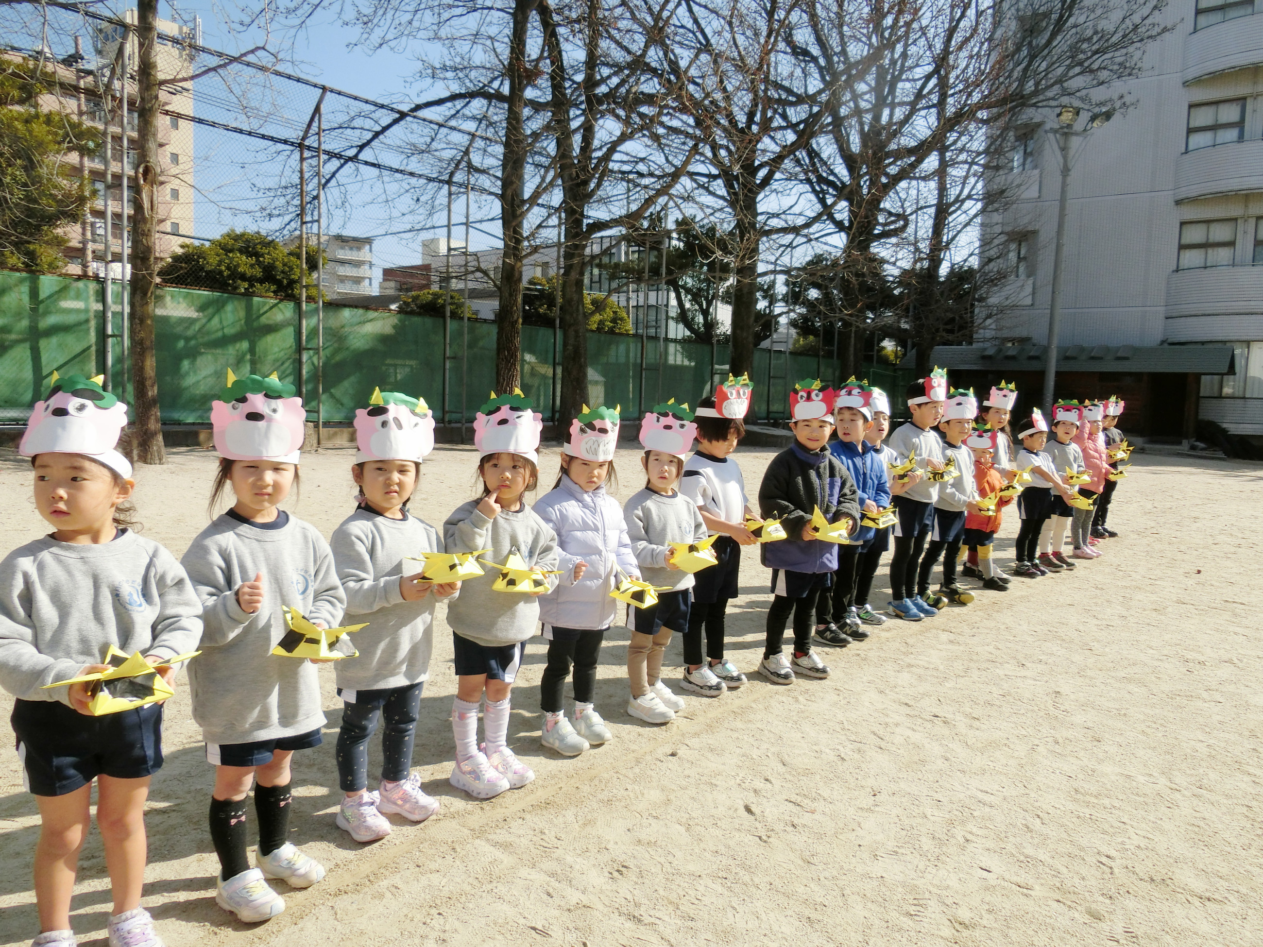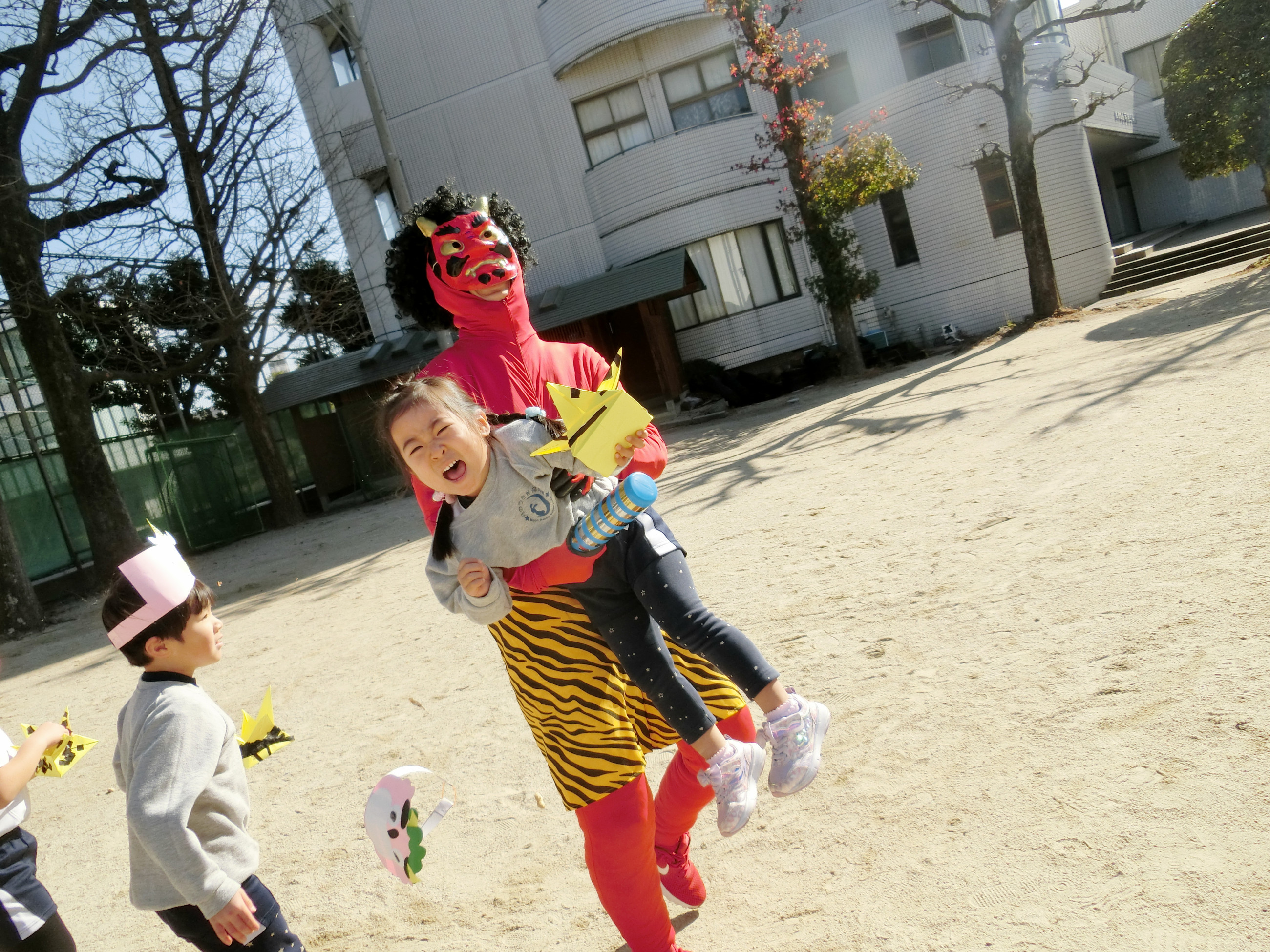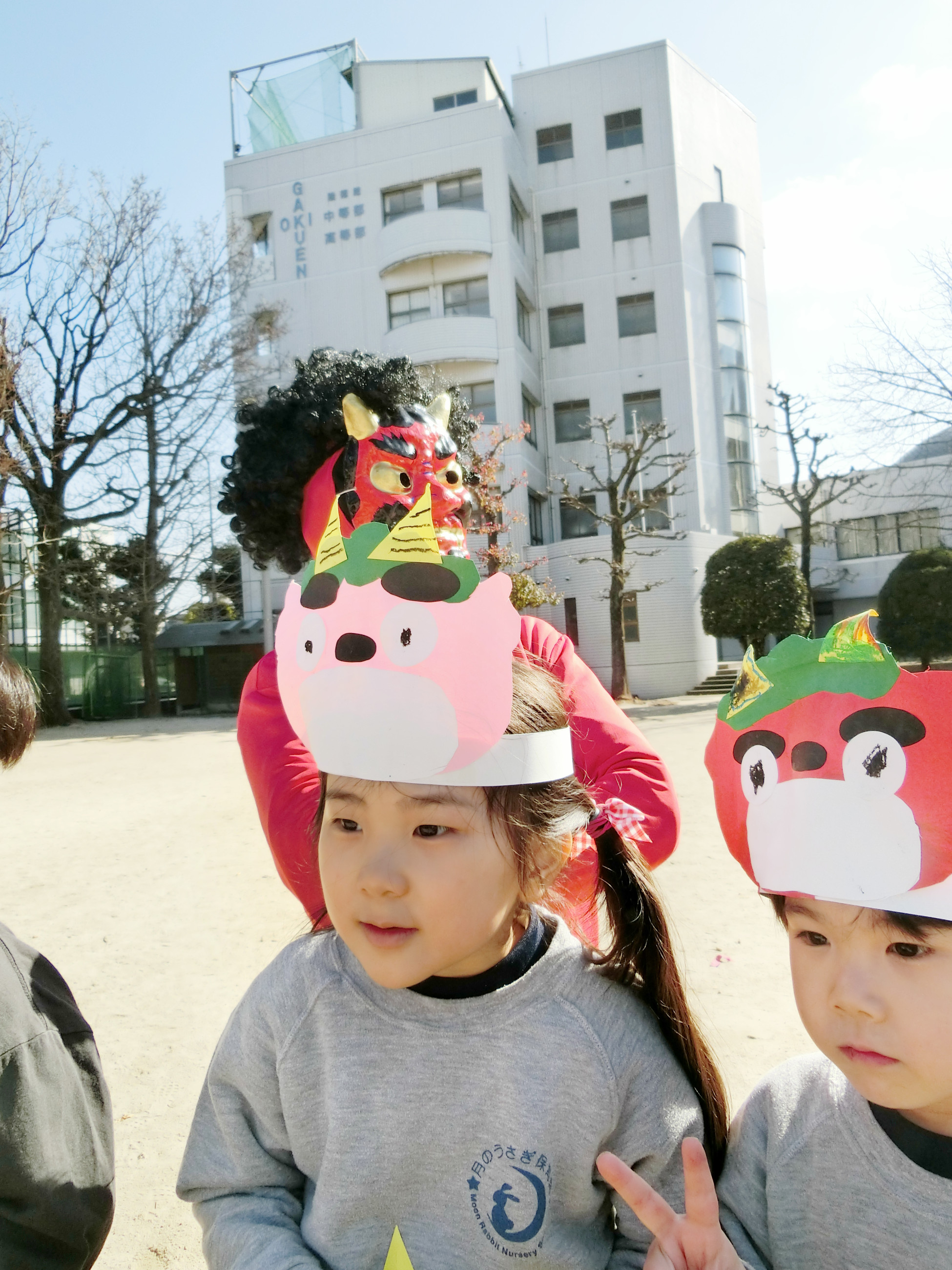 自分の体の中にいる鬼を倒すべく!「鬼は~外~」「福は~内~」と元気よく豆をまきます!!