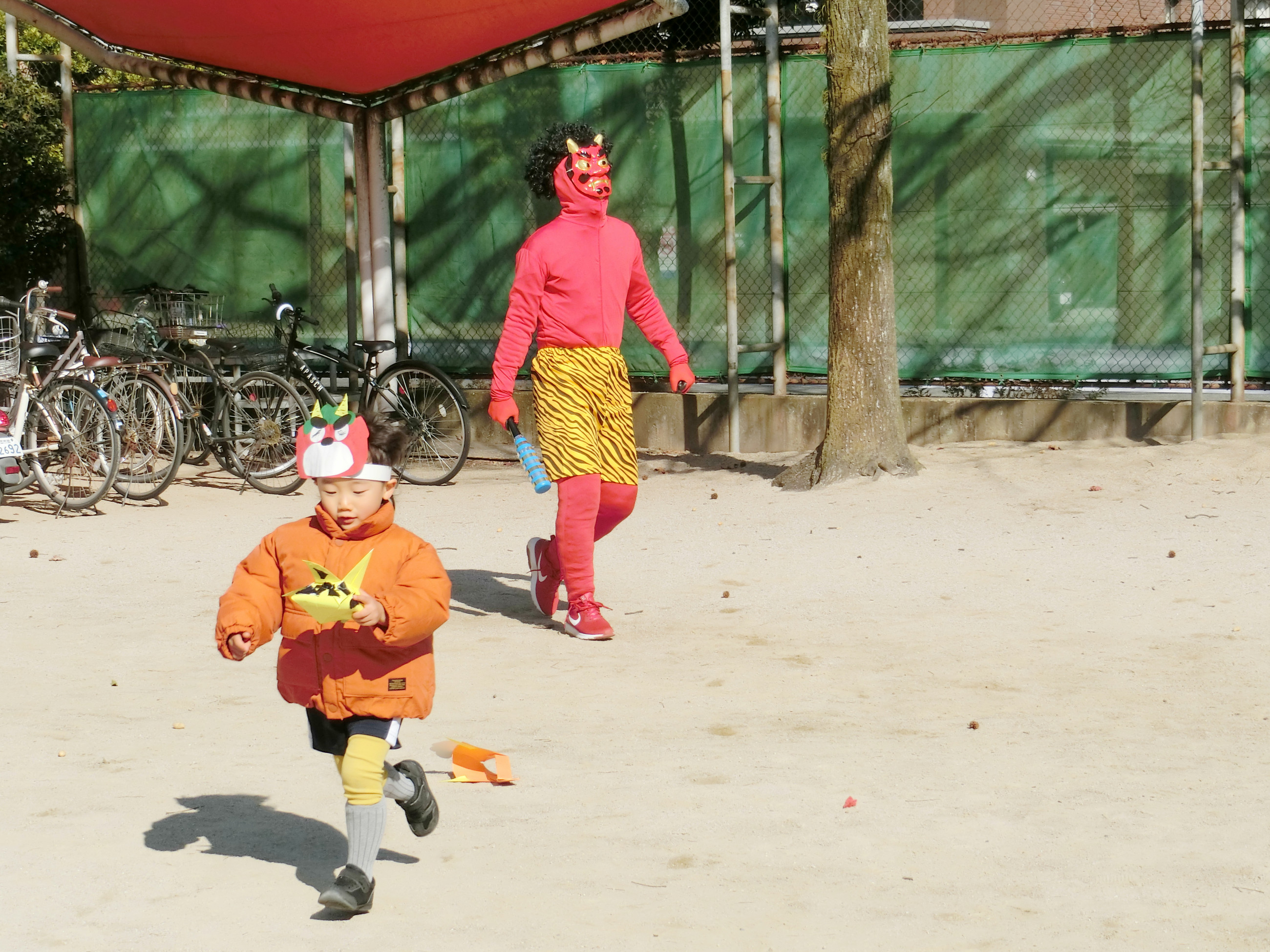 鬼がどこから来るか・・・。緊張感がこの写真から伝わります💦