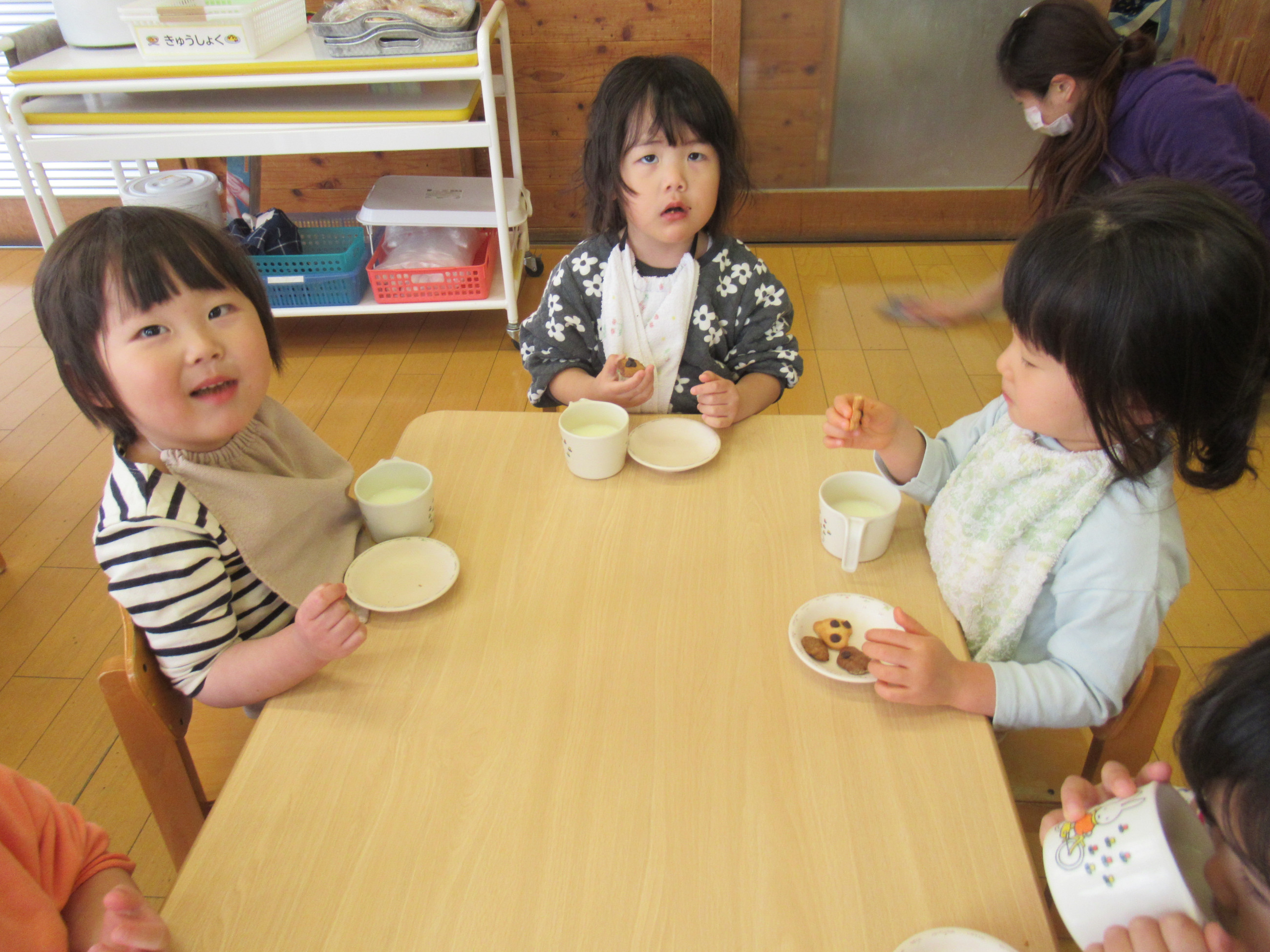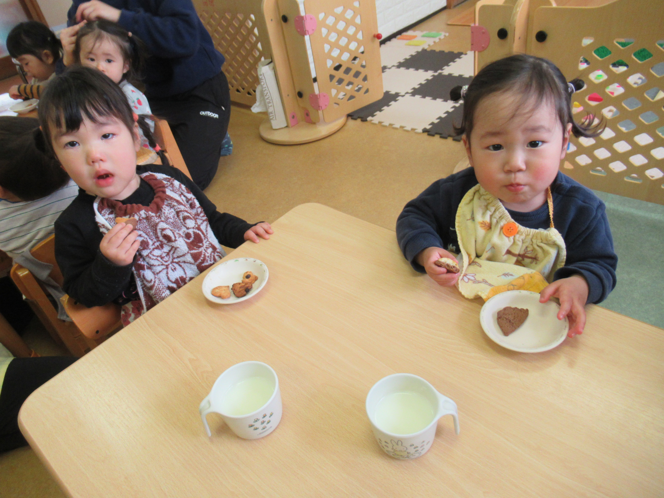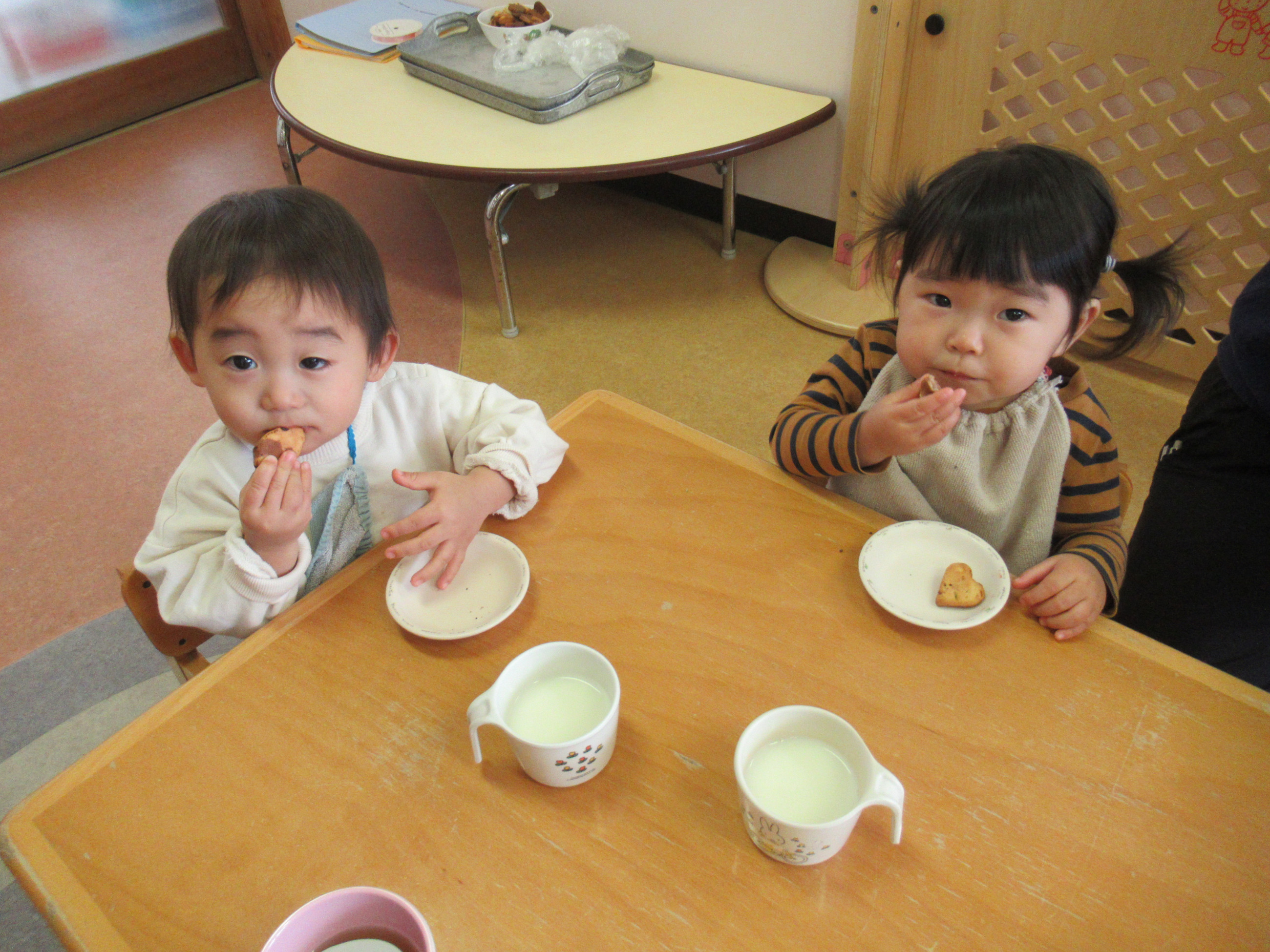 クッキーの焼き上がりのいい香りとともに、午睡から目が覚めた子どもたち!!