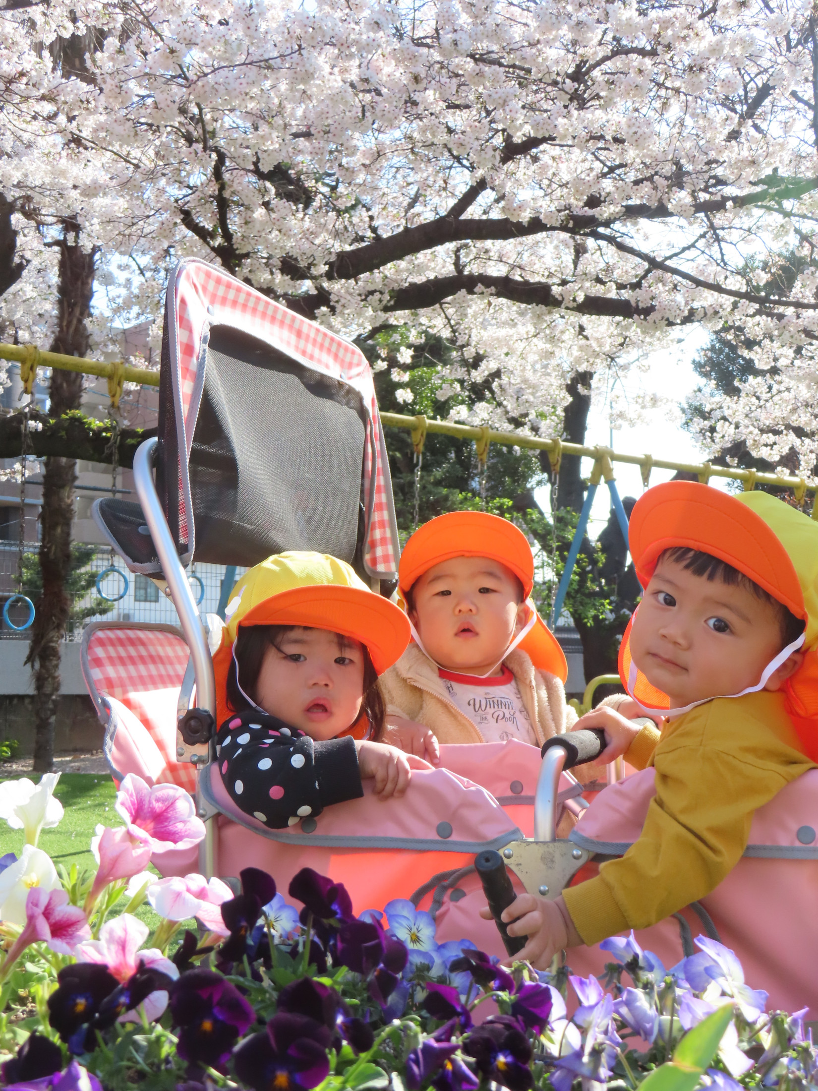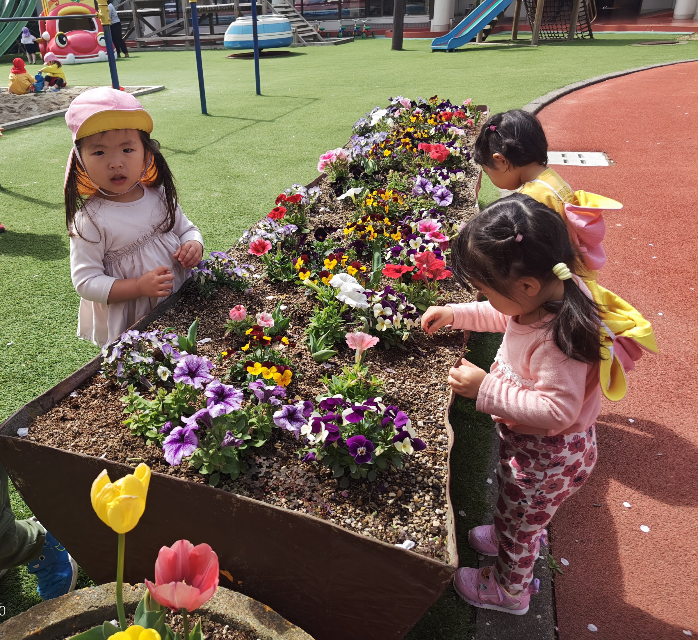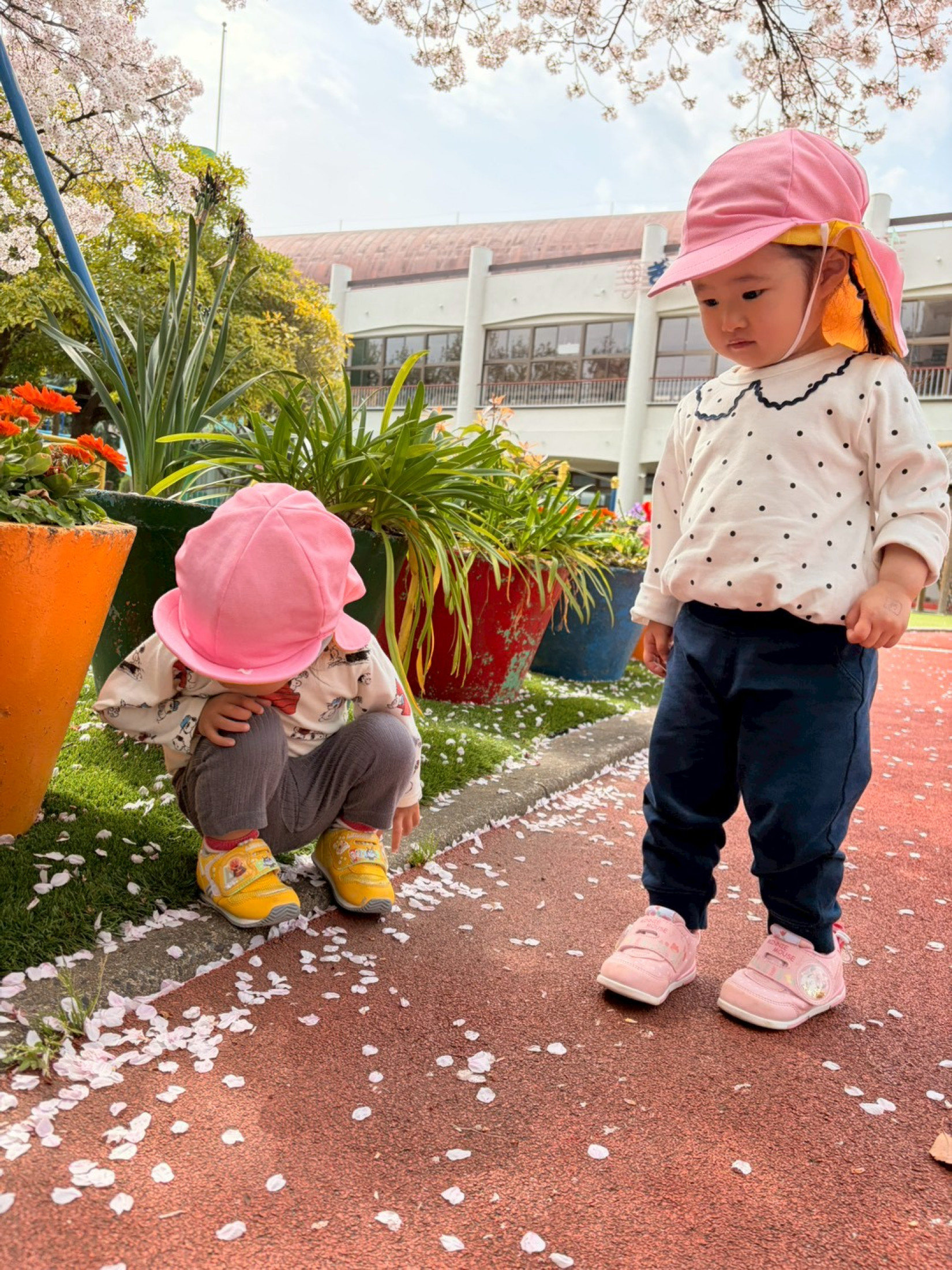 園庭では桜の花びら集めを楽しんでいます🌸